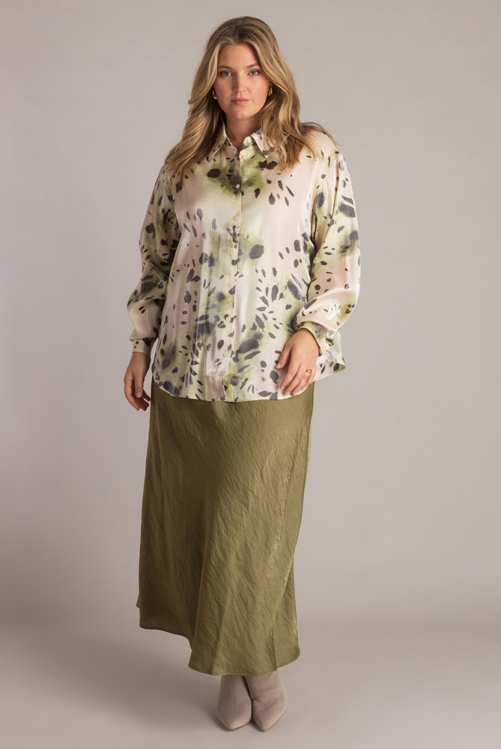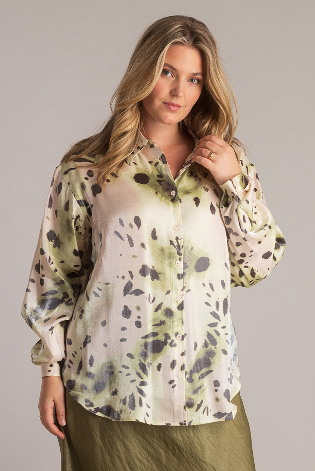 Jutta heeft die mooie, glanzende vibe die meteen opvalt. De comfort fit zit heerlijk relaxed, de stof voelt luchtig en de allover print brengt beweging en kleur in je outfit. Zo’n blouse die je in één keer een frisse, moderne look geeft.