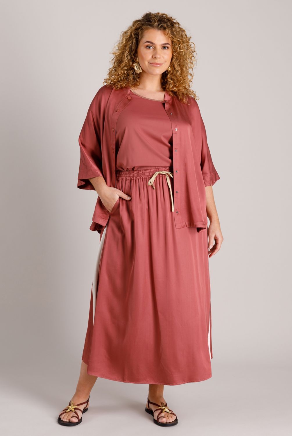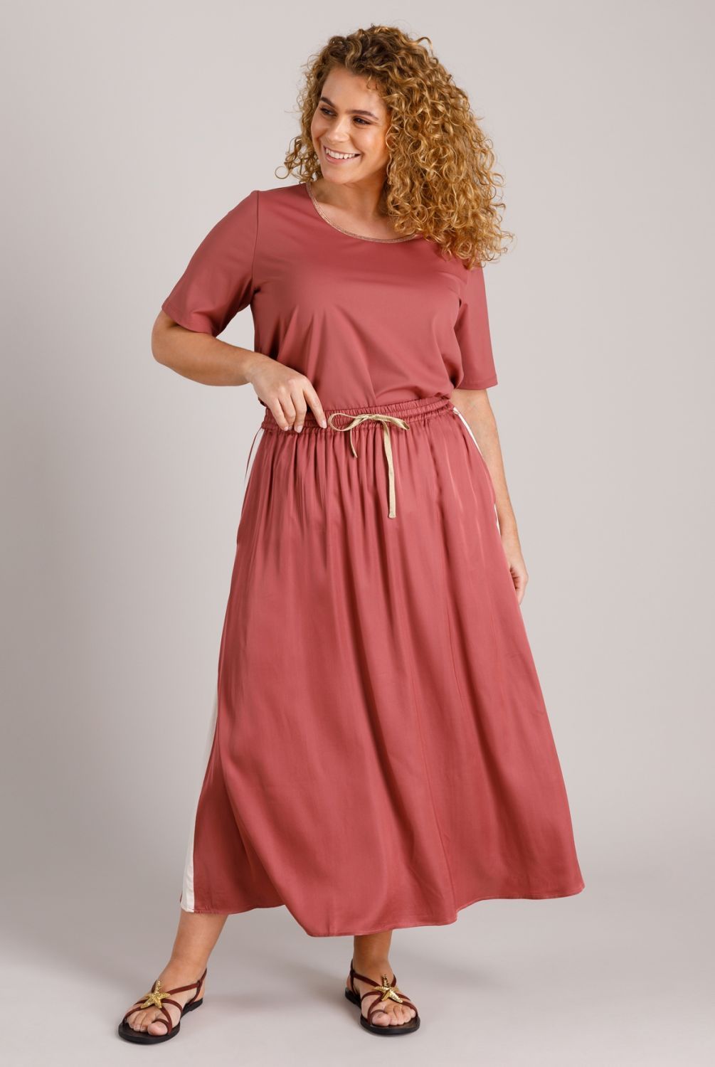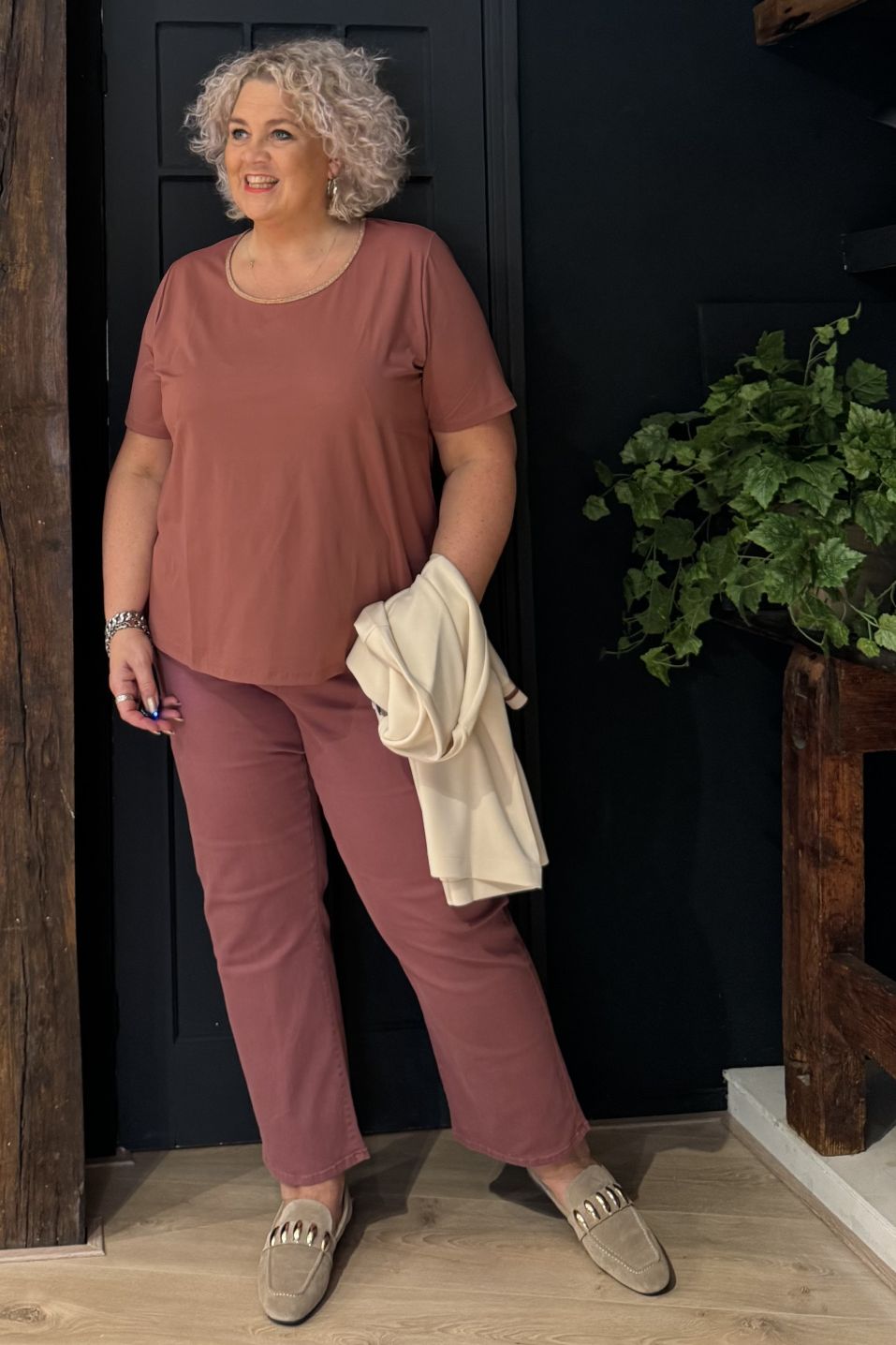 Dit travel T-shirt heeft een ronde halslijn die subtiel is afgewerkt met een glitterrand. De gladde, stretchy kwaliteit (75% polyamide, 25% elastane) draagt comfortabel en volgt mooi het lichaam dankzij de slim fit. Verkrijgbaar in plum en botanic green.