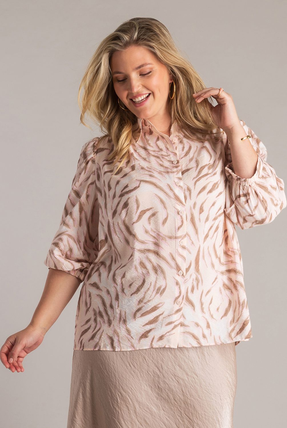 Vajenna Essential voelt direct zacht en luchtig aan, precies wat je zoekt op frisse dagen. De 3/4-mouwen en schouderplooitjes geven een speelse, vrouwelijke touch, terwijl de zachte print het geheel een warme uitstraling geeft. Een blouse die elke look net dat beetje meer karakter geeft.