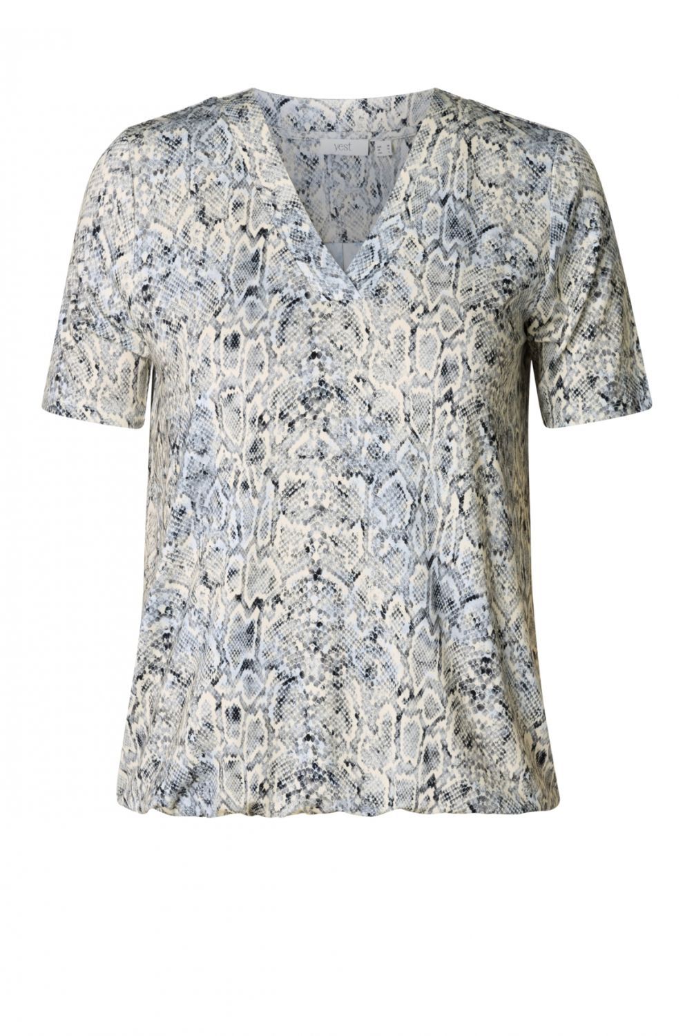 Dit T-shirt is gemaakt van een zachte Ecovero-viscosemix met elastane, waardoor het comfortabel en soepel draagt. De regular fit en V-hals zorgen voor een flatterend silhouet. Verkrijgbaar in meerdere prints, waaronder een zachte roze variant en een stoere animalprint.