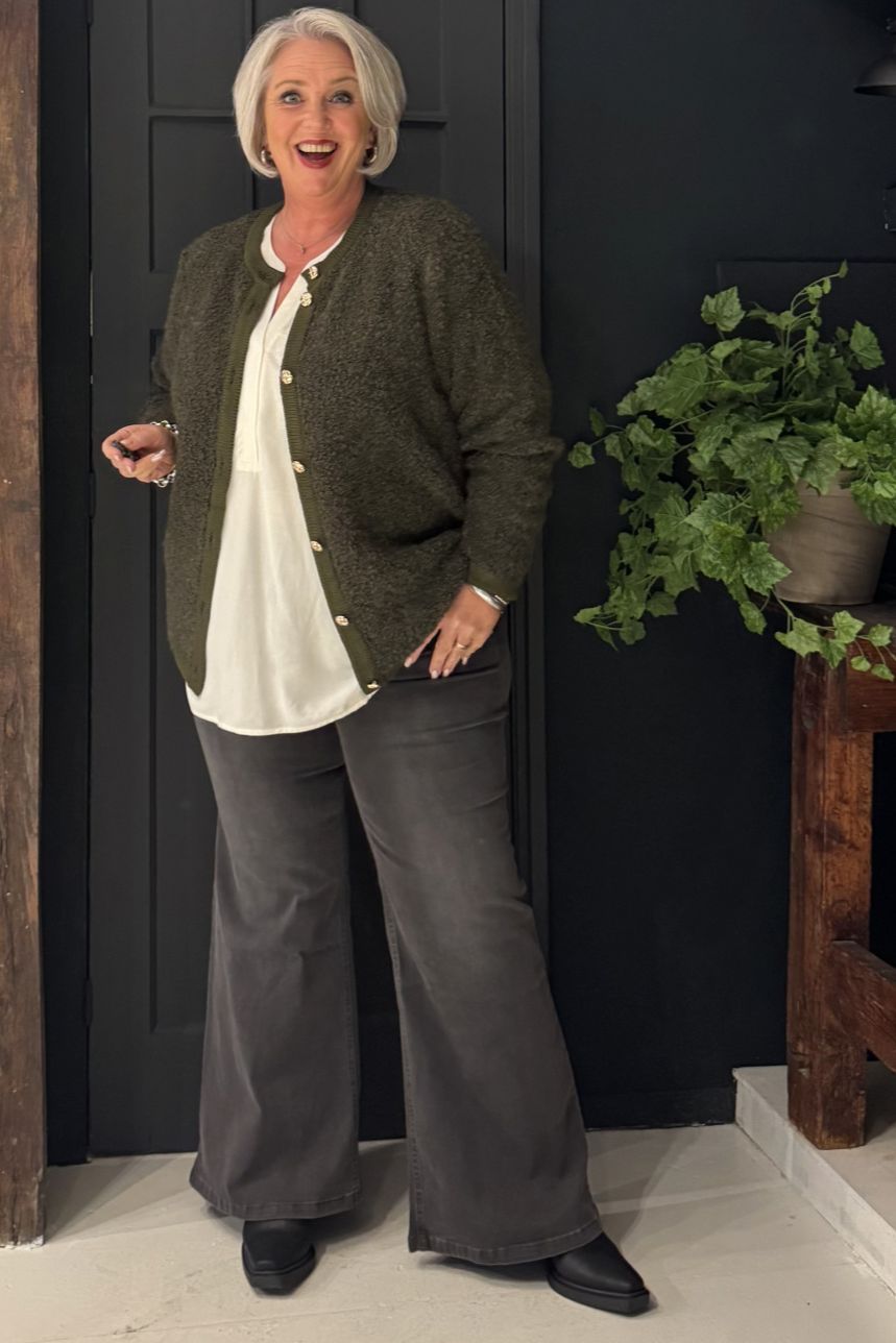 Dit vest is een zachte allrounder met een mix van duurzame materialen en stretch. Het klassiek model met knopen krijgt een eigentijdse twist door de speelse structuur van het breisel. Lekker om over een T-shirt of blouse te dragen, altijd goed gestyled.