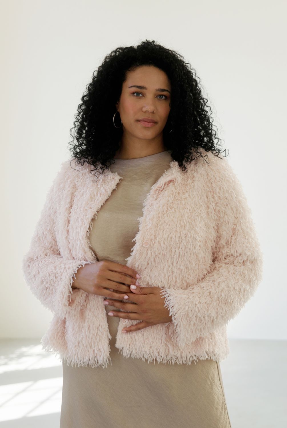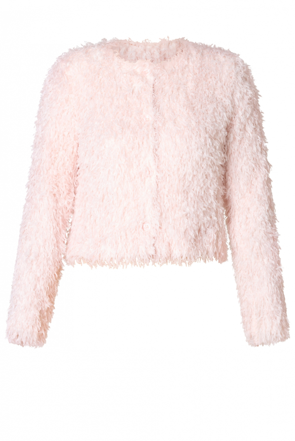 Jovana is puur knuffel-comfort! Het fluffy materiaal voelt superzacht, de zachtroze kleur is onweerstaanbaar en de lichte voering maakt ’m perfect om overal overheen te dragen. Met de knoopjes dicht of open staat dit jasje altijd cute én stylish.