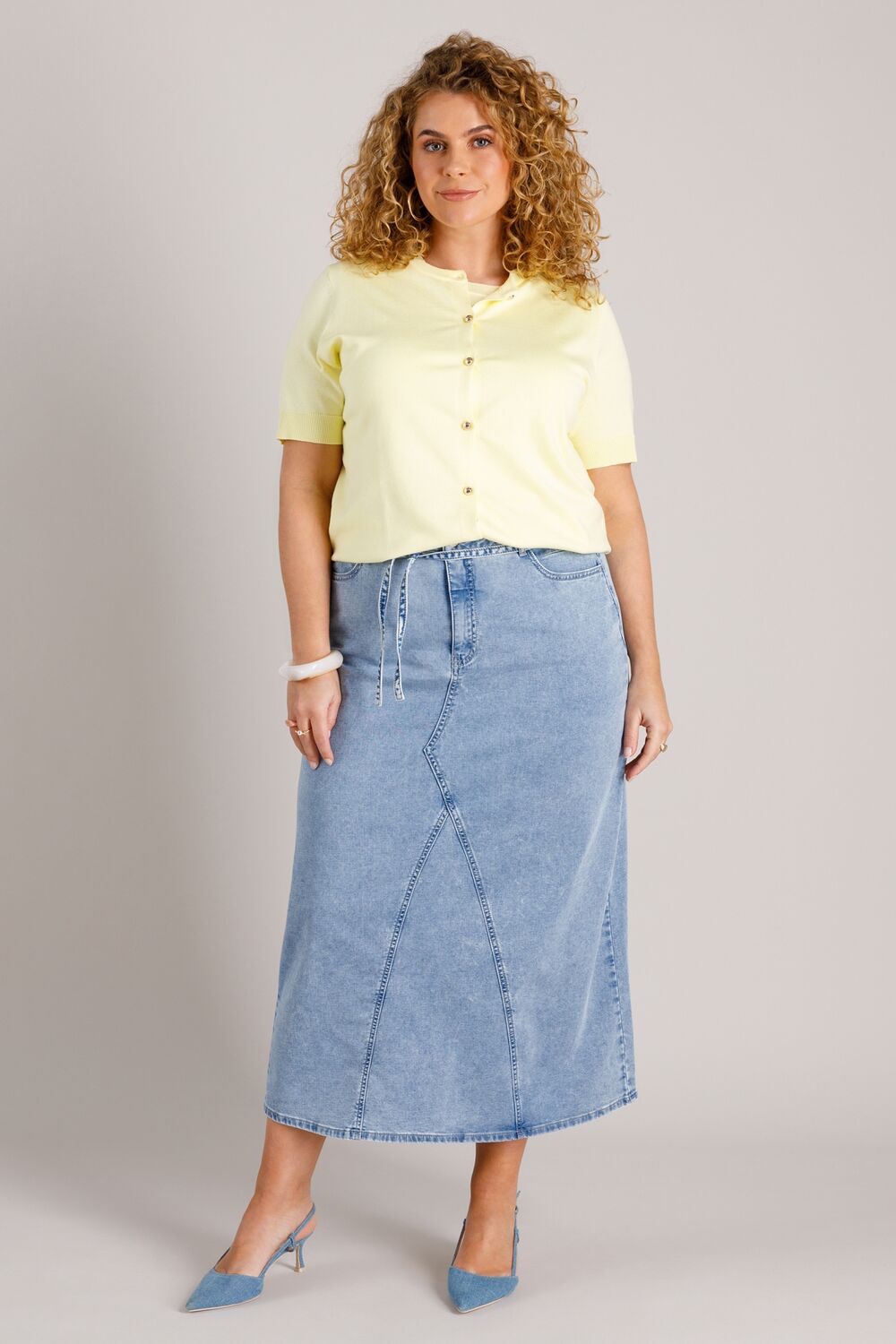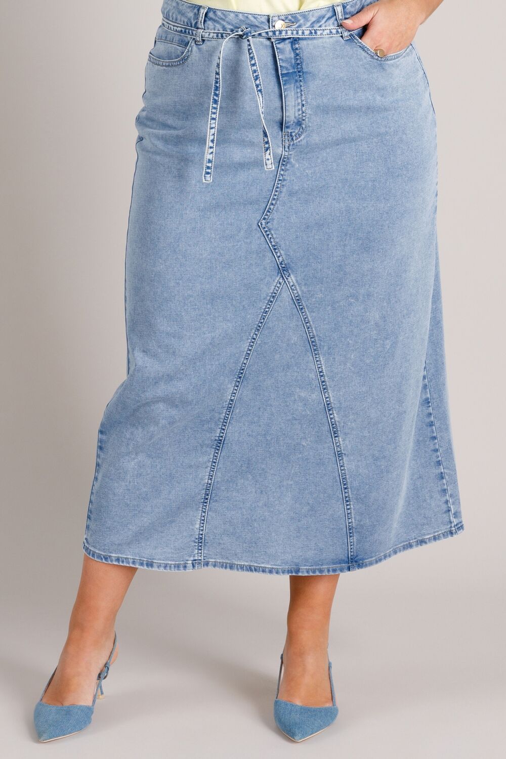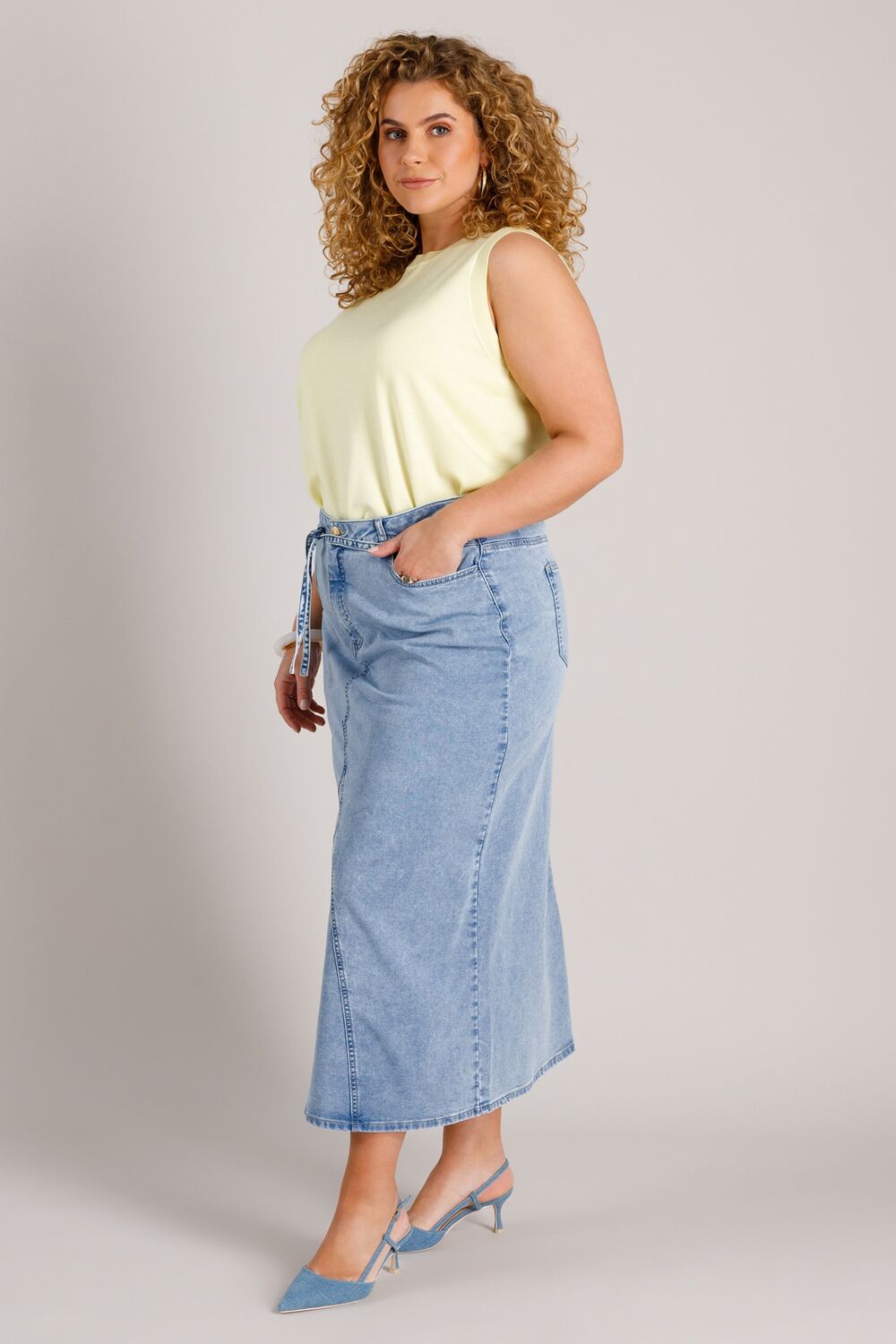 De Wiebke Essential is uitgevoerd in een lichte katoenmix met stretch. De halflange lengte en het strikkoord in de taille zorgen voor een comfortabele fit. Een tijdloze rok van soepele denimkwaliteit — ideaal voor het komende zomerweer!