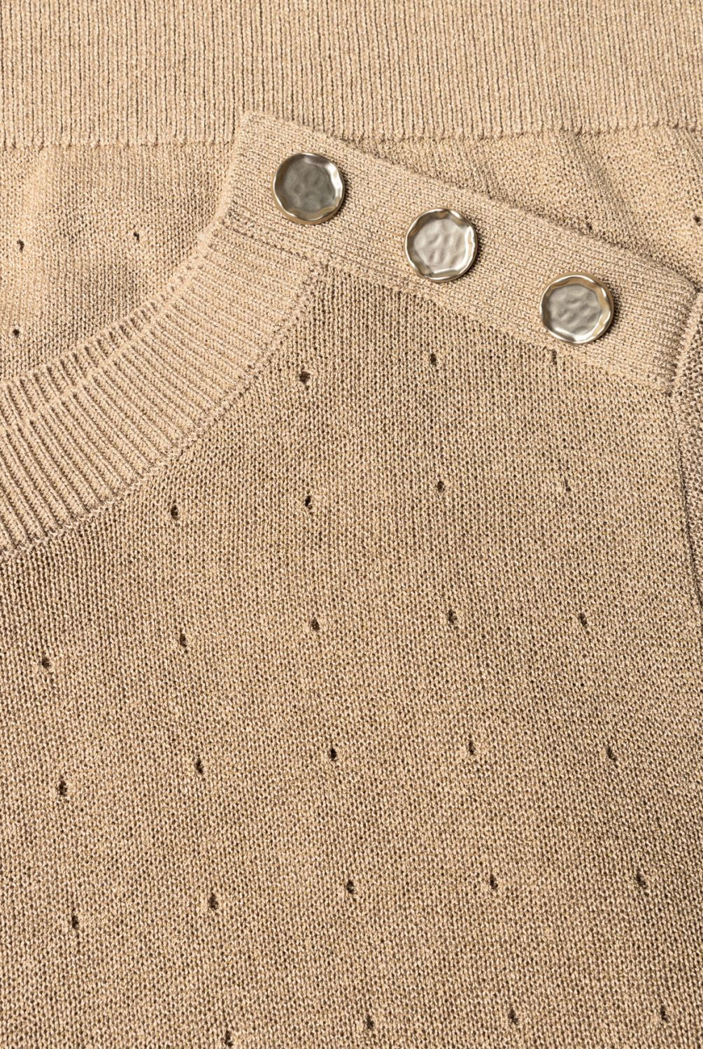 Dit topje valt op door de fijne, opengewerkte structuur en het lichte breisel. Gemaakt van viscose, metallized fibre en nylon, voelt het zacht en licht aan. De schouderknopen voegen een subtiel maar stijlvol accent toe aan dit comfortabele item.