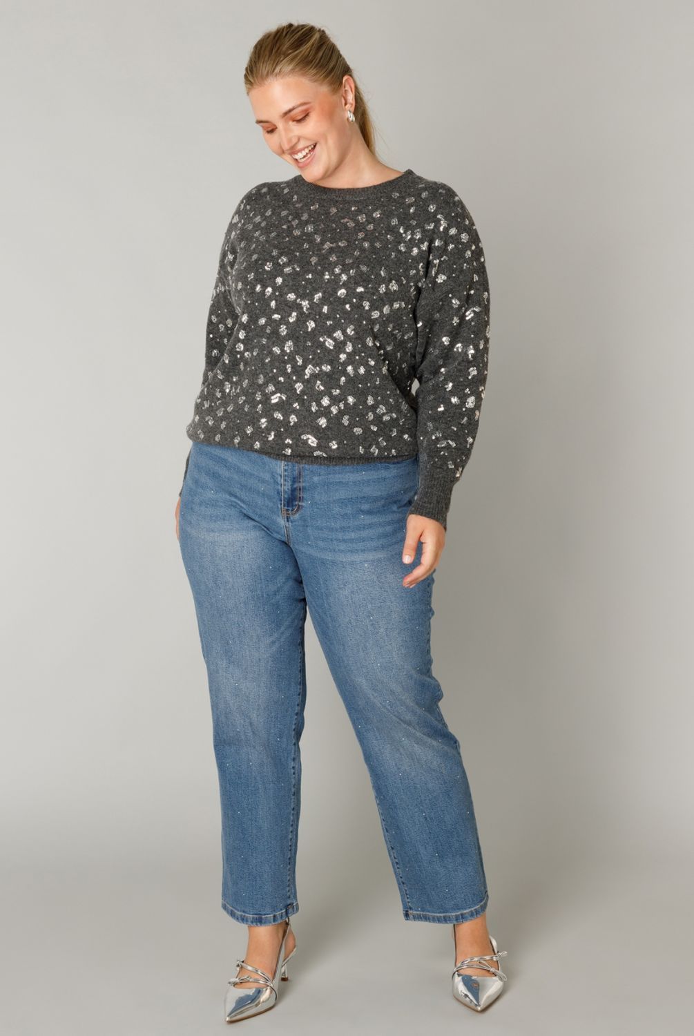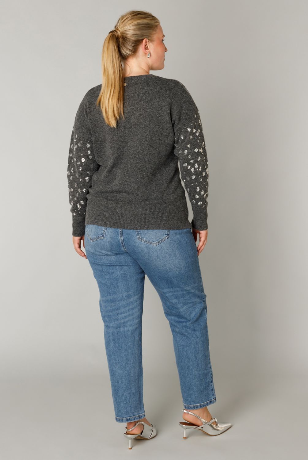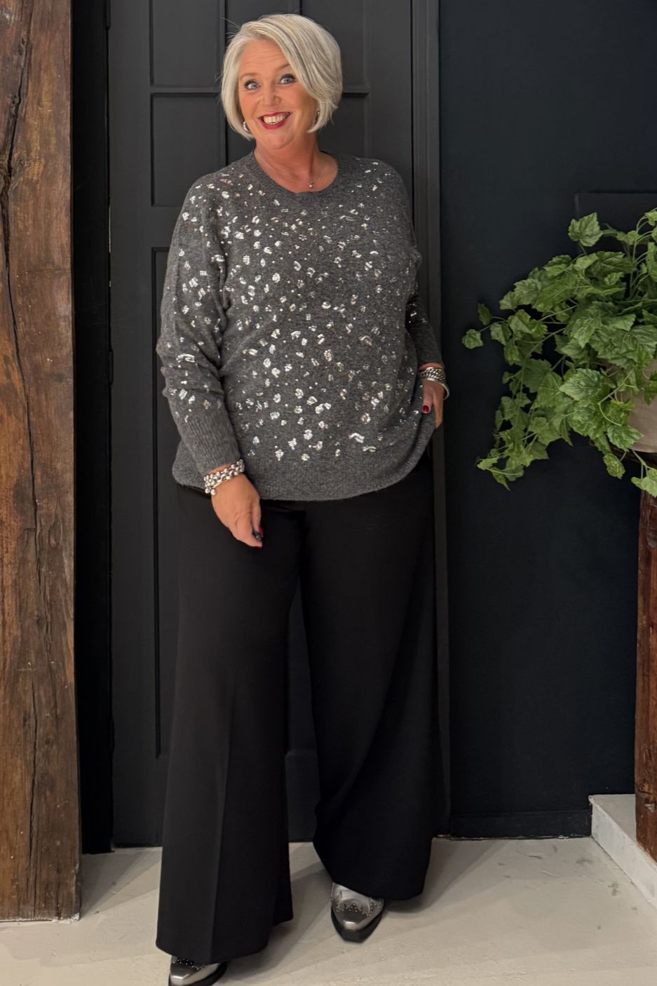 Deze trui voelt heerlijk zacht aan dankzij de mix van polyester, PAN, nylon, wol en elastaan. De pailletten voegen een elegante shine toe aan het casual model met een comfortabele fit. Een mooie balans tussen relaxed comfort en een feestelijk detail voor je garderobe.
