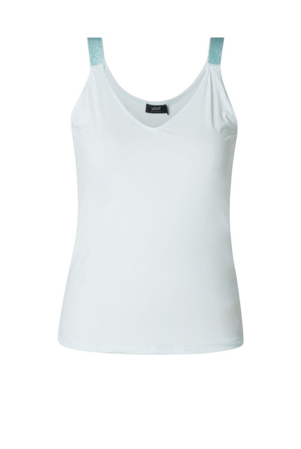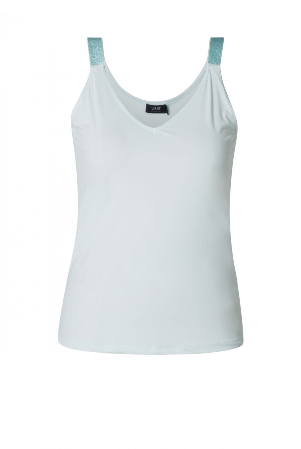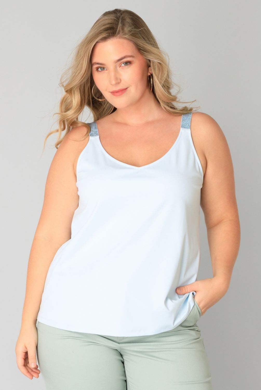 Elegant in zijn eenvoud! Dit topje heeft een tijdloze effen kleur en is gemaakt van een mix van polyamide en elastaan, wat zorgt voor een perfecte pasvorm. De schouderbandjes met glitter geven net dat beetje extra flair. Perfect voor de zomer!