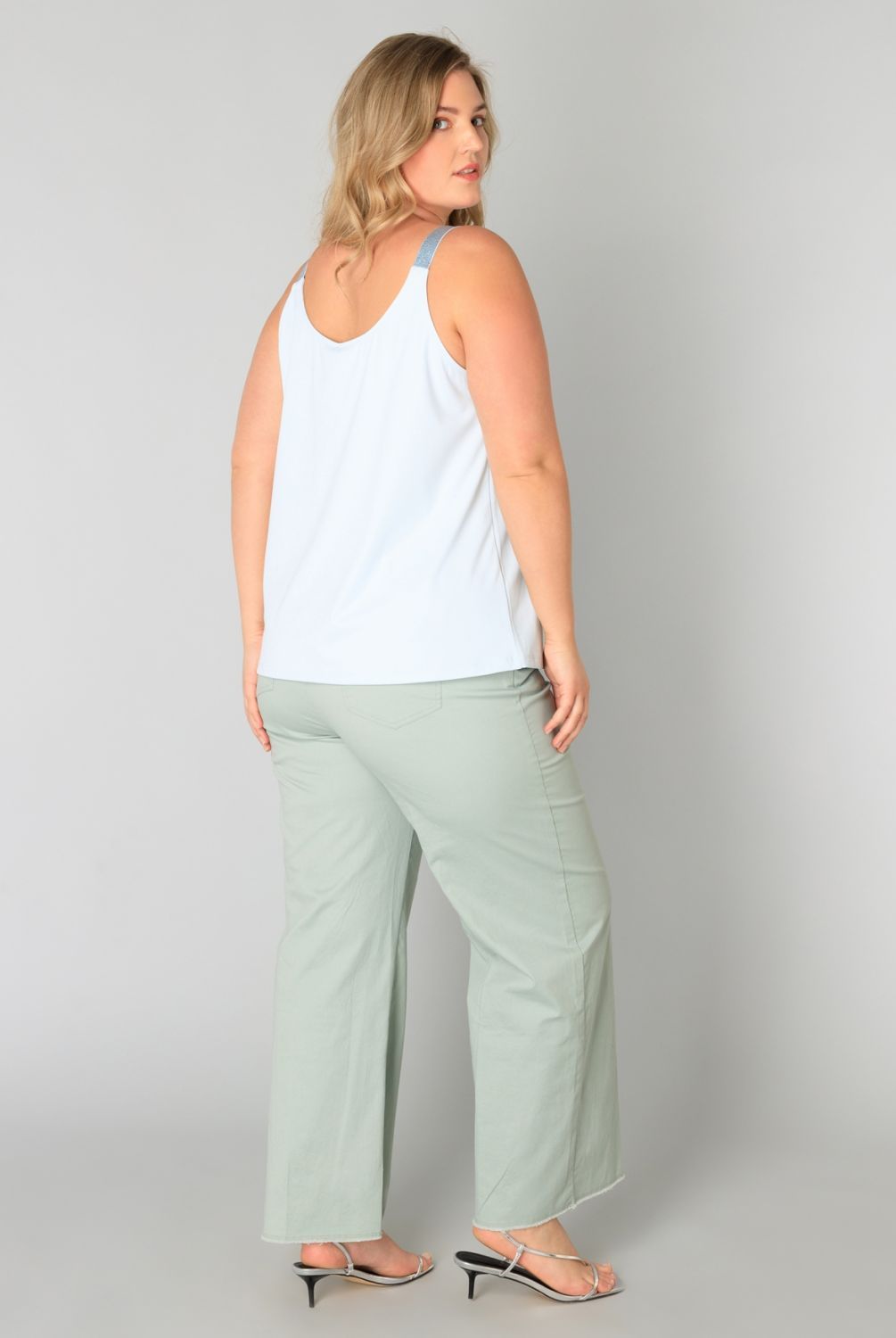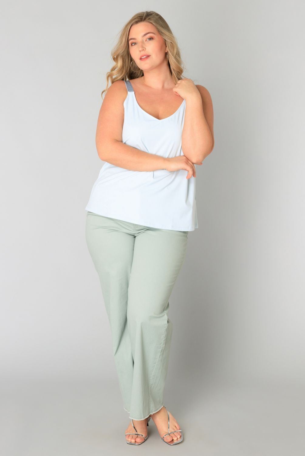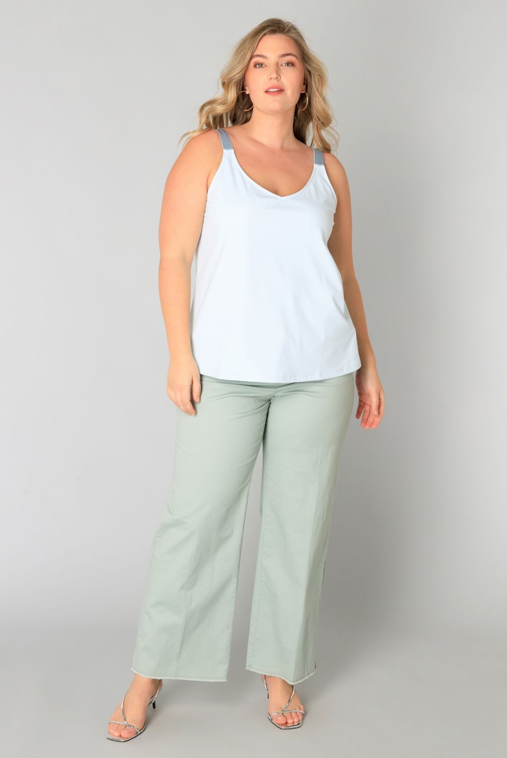 Elegant in zijn eenvoud! Dit topje heeft een tijdloze effen kleur en is gemaakt van een mix van polyamide en elastaan, wat zorgt voor een perfecte pasvorm. De schouderbandjes met glitter geven net dat beetje extra flair. Perfect voor de zomer!