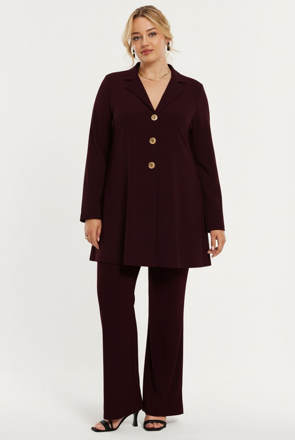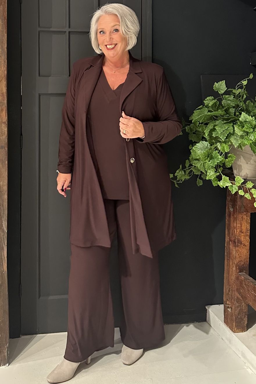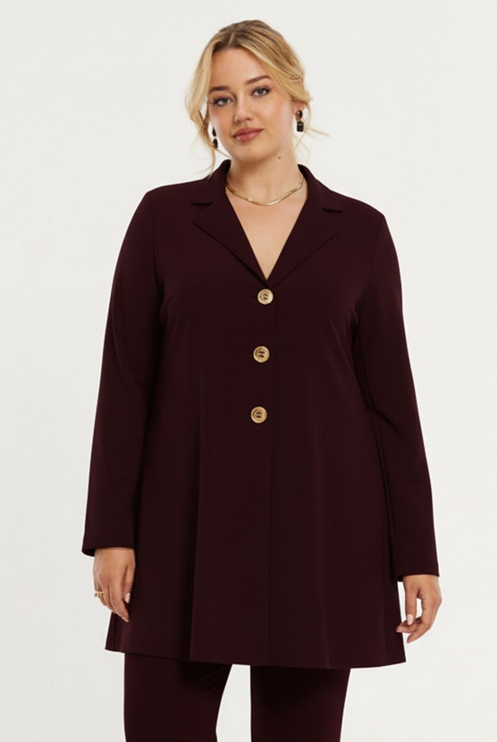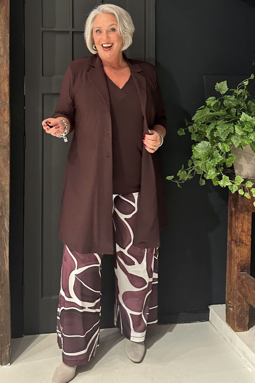 Lovers van pakken, verzamelen! Deze fantastisch mooie blazer in het bordeaux is alles wat je momenteel nodig hebt. Gemaakt van ons soepele recycled dolce materiaal en met de fijne A-lijn pasvorm voor een flatterend silhouet. Perfect om te combineren met de bijpassende broek voor een stijlvolle co-ord set of met een geprinte broek voor een trendy look.