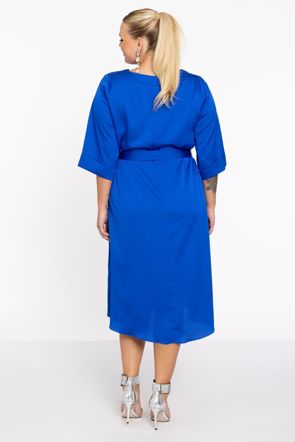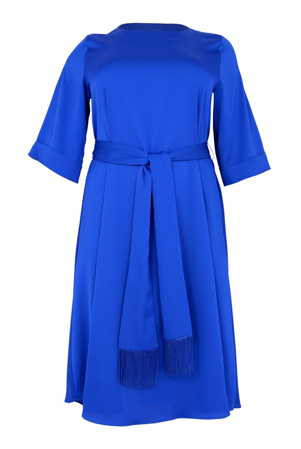yoek dress fringed belt satini