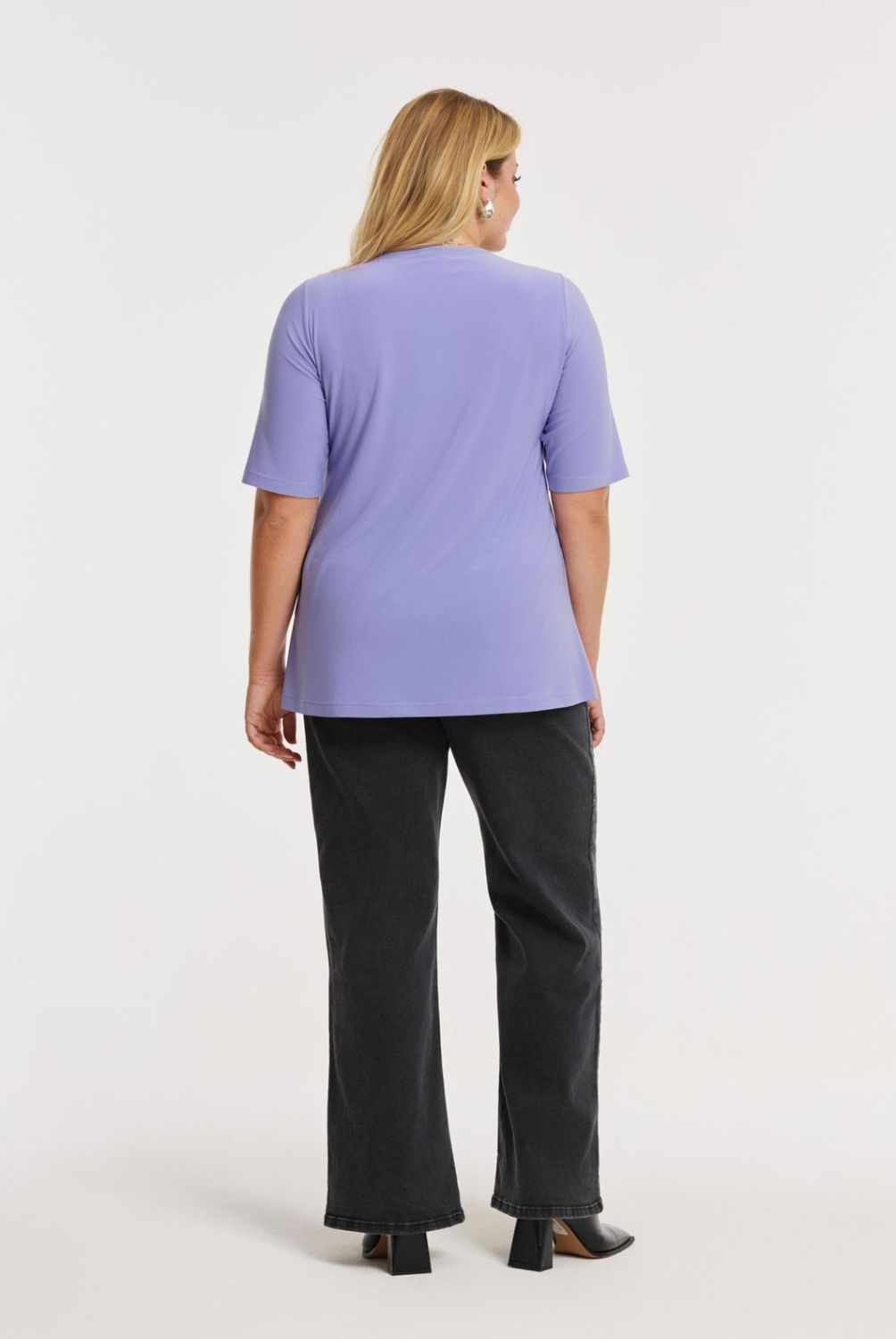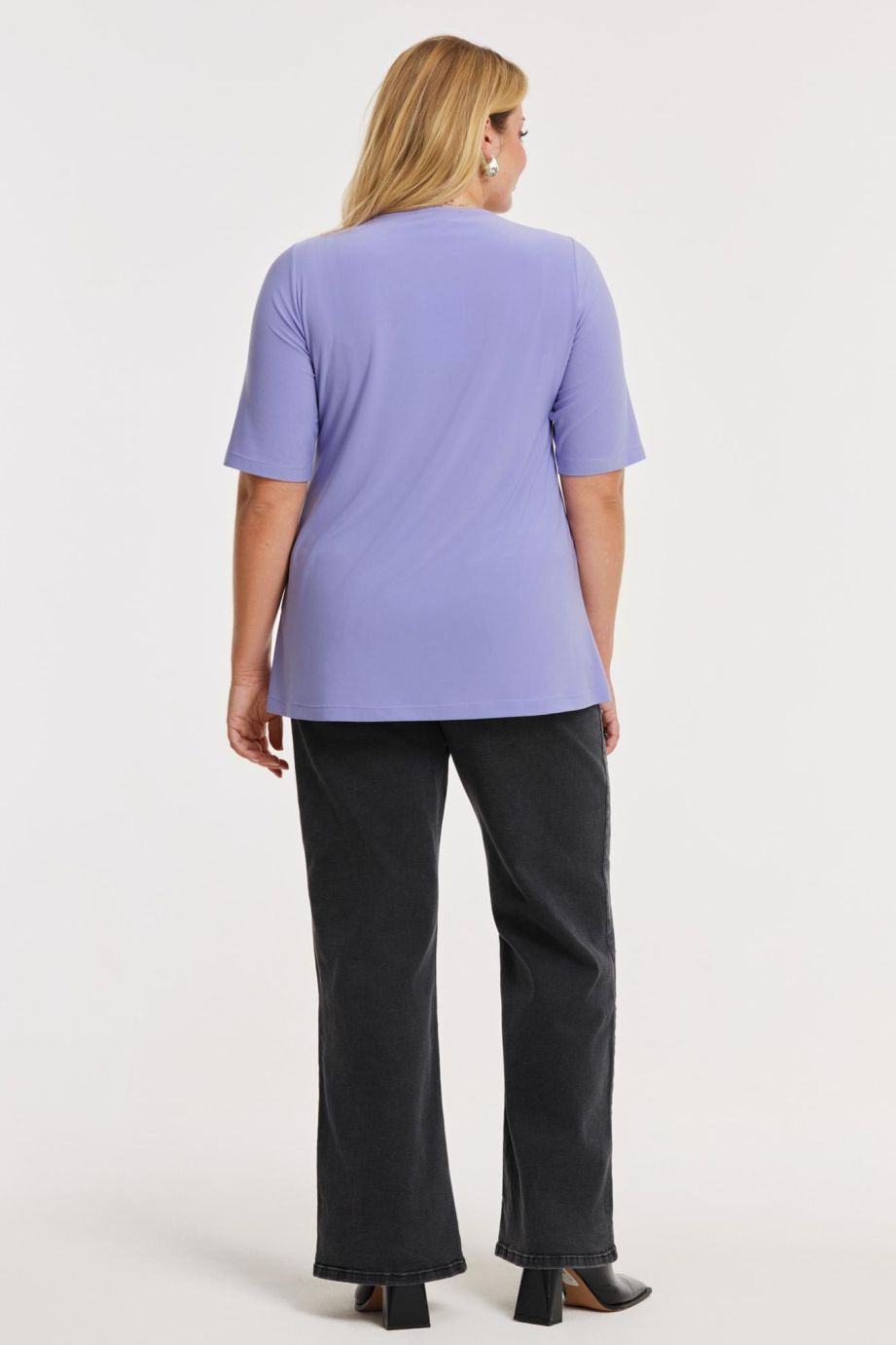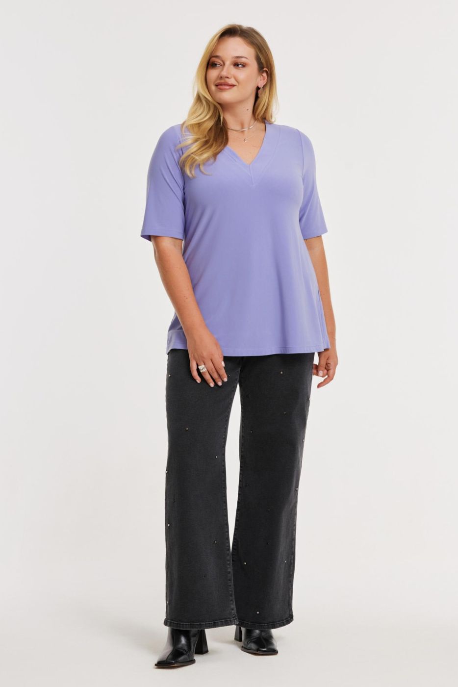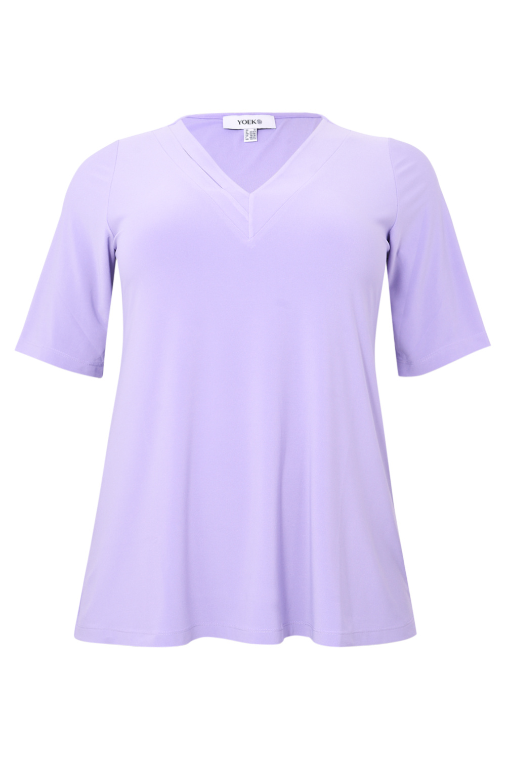 Een veelzijdige top met een strakke V-hals en korte mouwen, ontworpen voor dagelijks draagcomfort. De A-lijn snit zorgt voor een flatterend effect. Gemaakt van een zachte stof die soepel valt. Makkelijk te combineren met zowel casual als geklede looks.