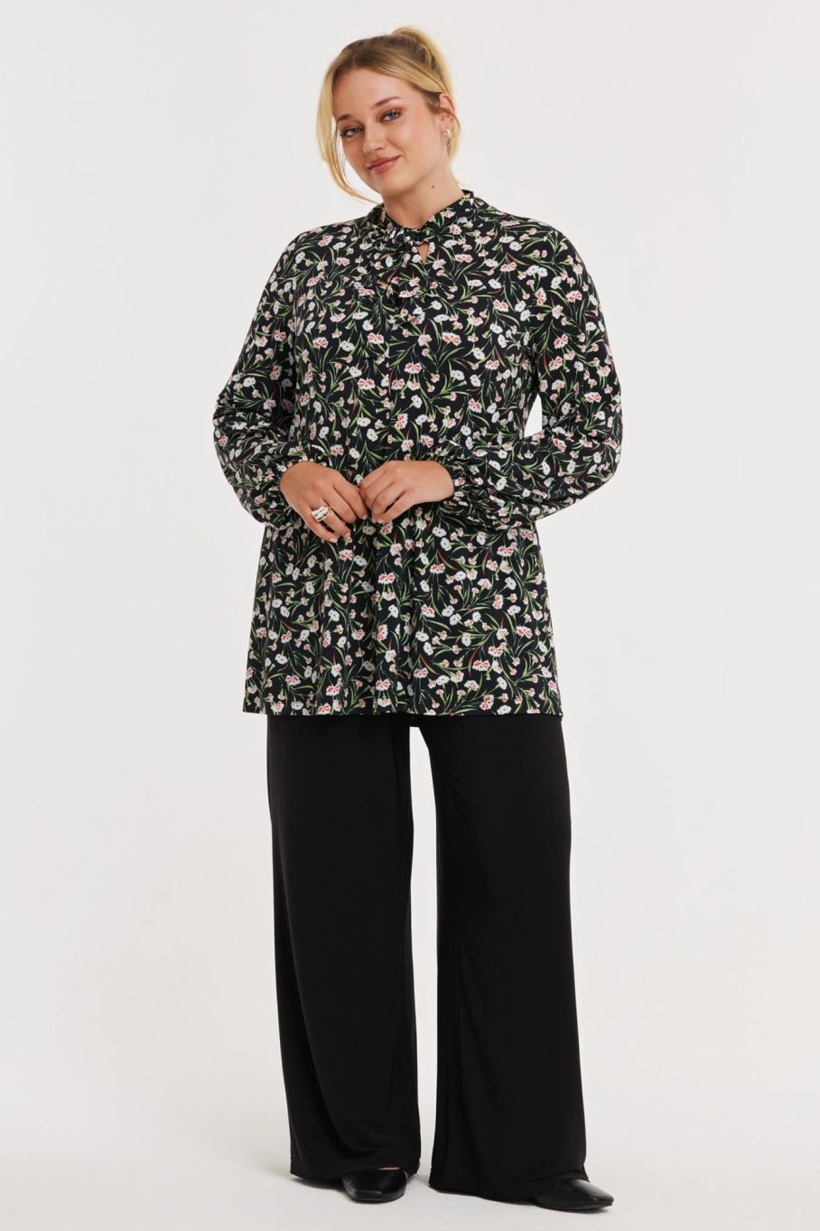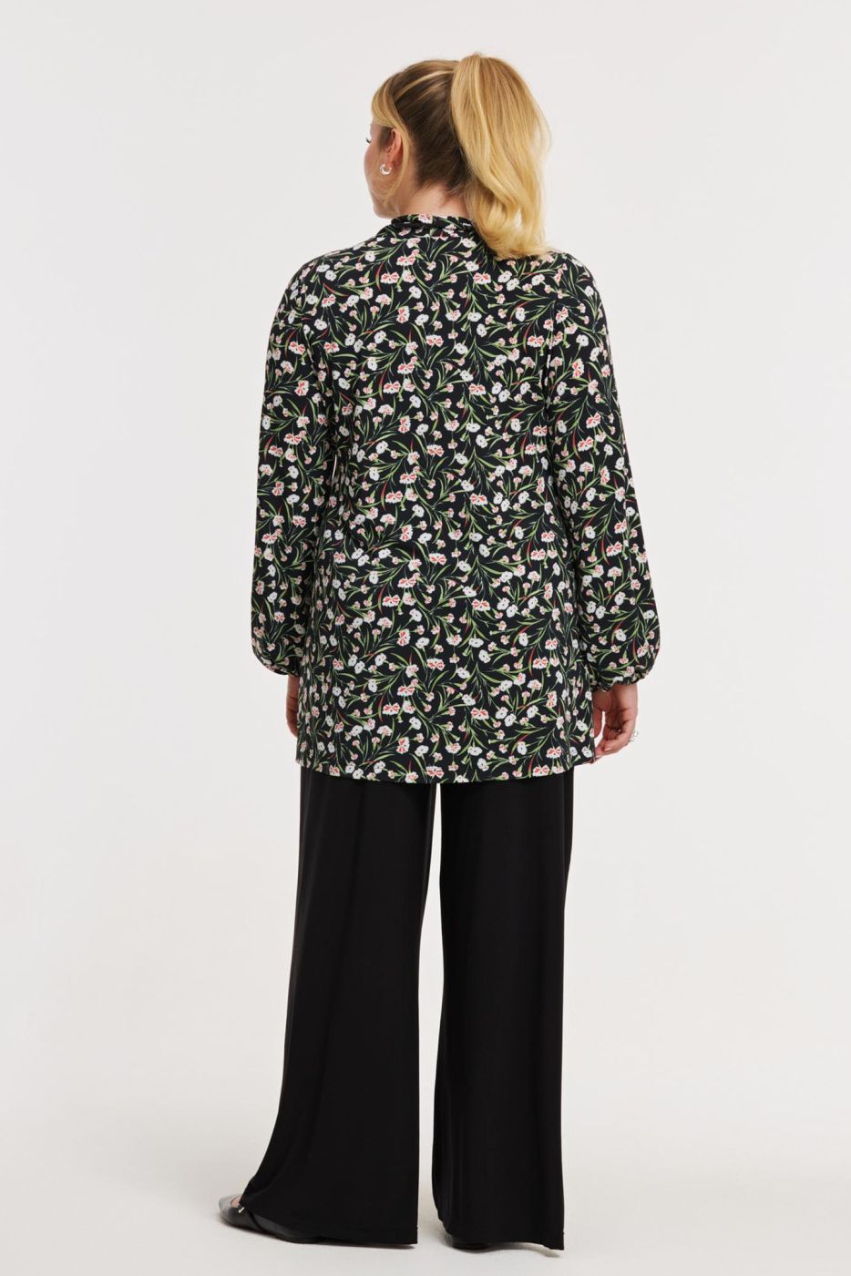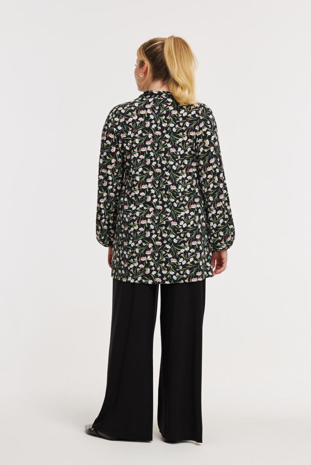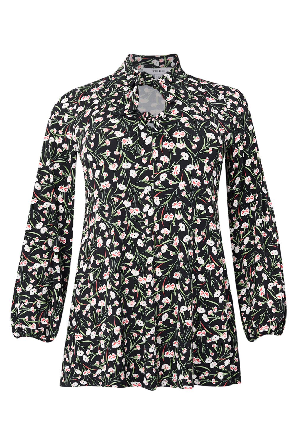 Deze stijlvolle tuniek, gemaakt van het comfortabele dolce-materiaal, is bedrukt met een charmante bloemenprint op een zwarte ondergrond. De striksluiting bij de hals geeft het ontwerp een vrouwelijke twist. Dankzij de bekende flare fit van YOEK valt de tuniek soepel en flatterend.