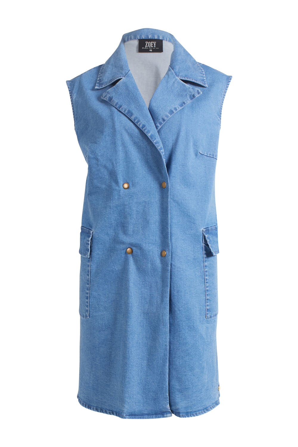 Vest Dawn is een stijlvoll en moderne vest van klassiek denim.